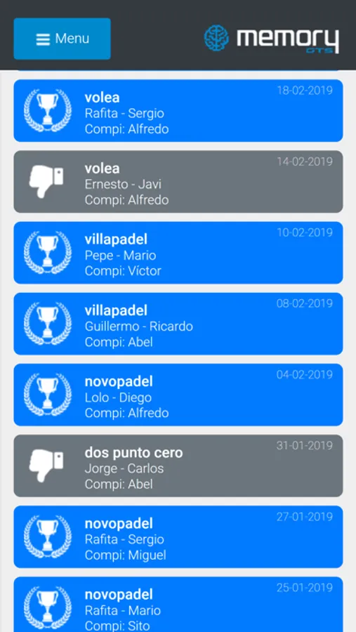 Gracias al app podrás mantener el histórico de tus partidos, un histórico de tus victorias y derrotas, de tus rivales y compañeros, tu evolución de juego en el transcurso del tiempo, ver y comparar las métricas de tus victorias derrotas así como tu rendimiento.