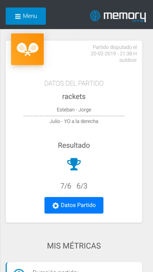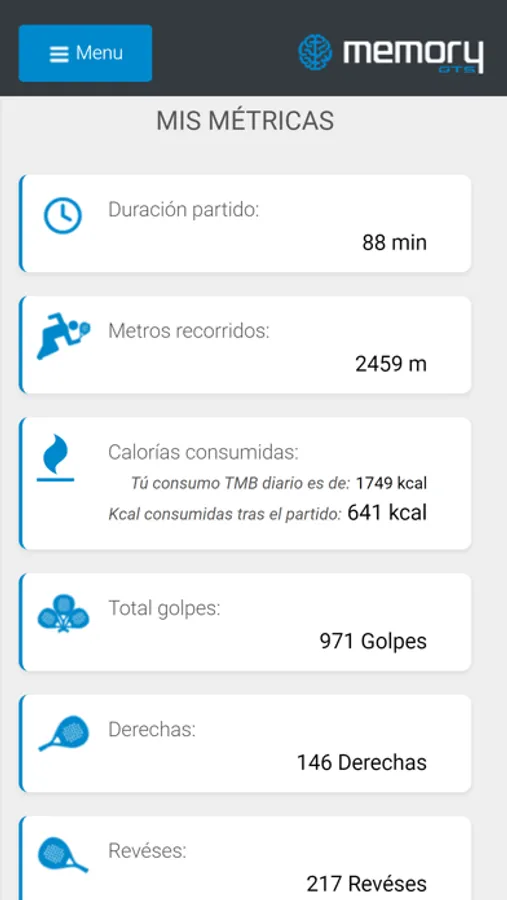 Con Memory entrarás en un nuevo concepto de padel con el que comenzarás a obtener gran cantidad de datos y podrás adquirir un valioso conocimiento sobre tu juego que te ayudará a entender y mejorar tu rendimiento.