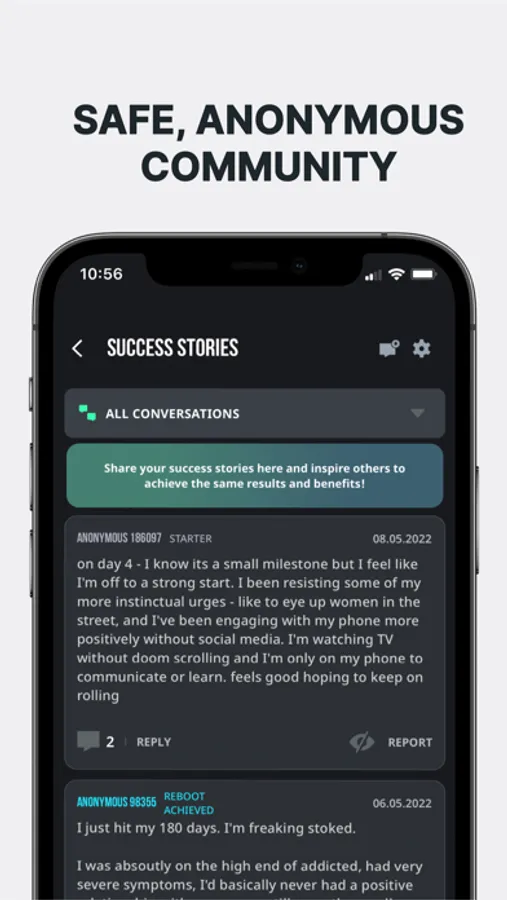 - Progress: Track your pornfree streak as you progress towards your reboot goals