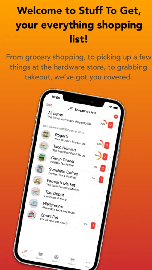 Stuff To Get is so much more than just a simple grocery list manager, it can handle any type of Shopping List you throw at it. Letting you keep all of your shopping trips neat, organized and efficient. Never forget to pick up an item again!