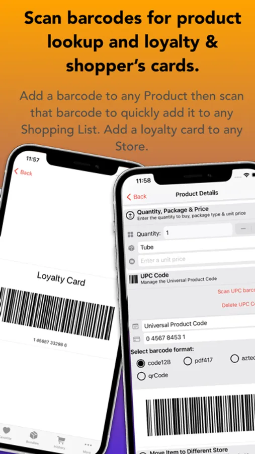 You can attach a barcode to any Products and later scan it to quickly add that item to any Shopping List. Say you just used the last of the ketchup... Grab your iPhone, scan the barcode on the bottle and add it to your grocery list in a snap!