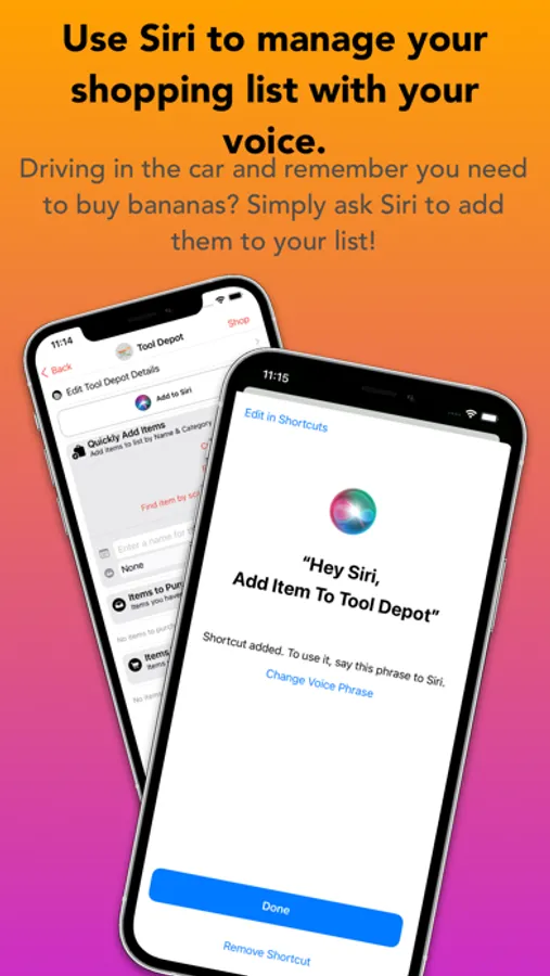 Stuff To Get can work with Siri to allow you to use your voice to maintain your Shopping Lists. Driving in the car and remember you need to buy milk? Simply ask Siri to add it to your list!