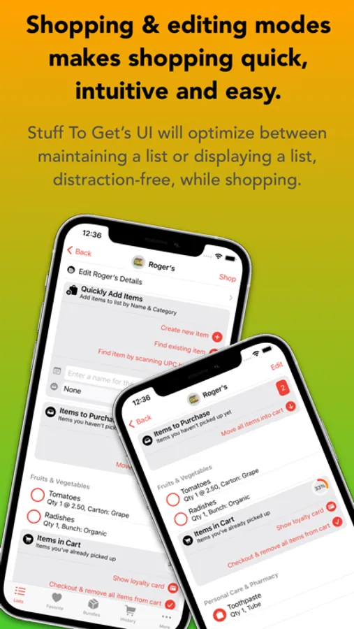 When you are editing or maintaining any of your Shopping Lists, Stuff To Get will present a UI tailored to adding and editing Products in the list.