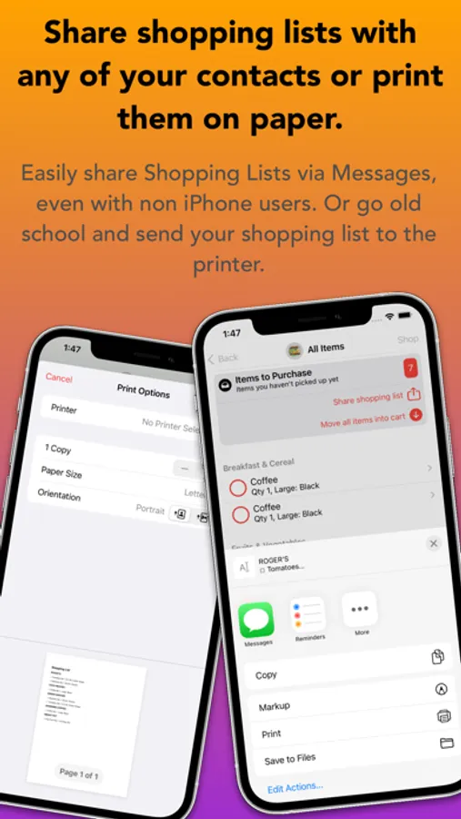 Need a family member to pick up a few items on your list? Easily share Shopping Lists via Messages... even with people who don't have iPhones.