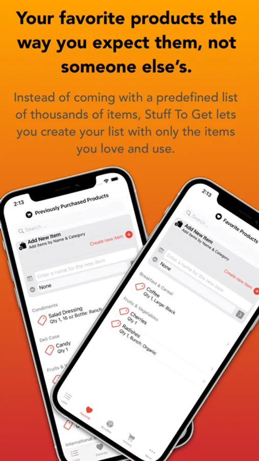 Every time you add or edit a Product, Stuff To Get will remember it so you can quickly add it to any Shopping List in the future. In no time, you'll build up the list of your Products, done your way.