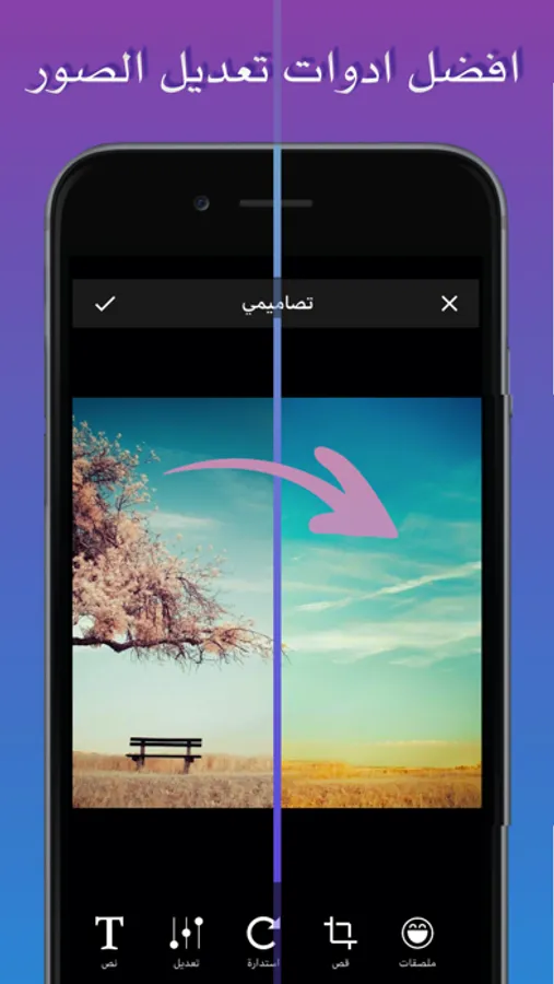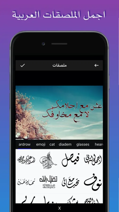 - The application eliminates Photoshop for filters and image tools such as posters and Arabic and English fonts