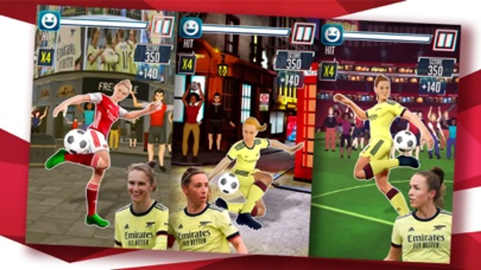 Show your best football freestyle moves to get new followers, meet and play alongside both male and female Arsenal stars, win in unique challenges performing dozens of tricks and play at iconic places in London!