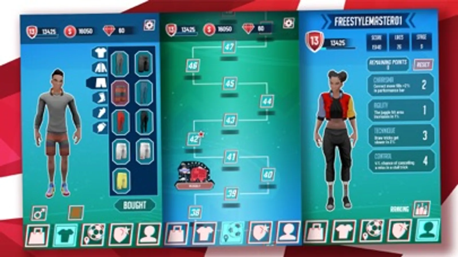 - Create your own character to become the best-looking football freestyle player of all time!