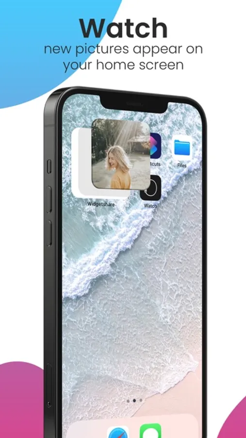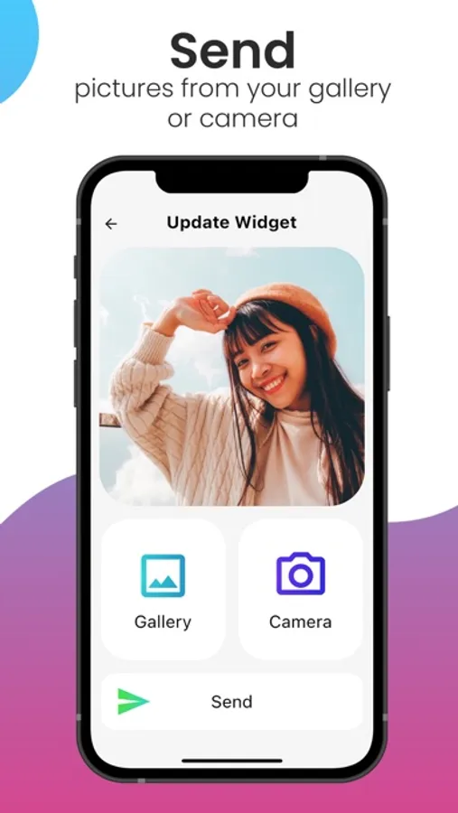 Share a home screen widget with a friend or loved one! When someone send you a picture it will show up in your widget just like magic.