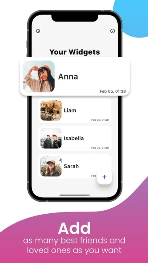 You can create different widgets for all the important people in your life and fill your home screen with their photos. Widgetshare has no limit on the number of people you can share a widget with!