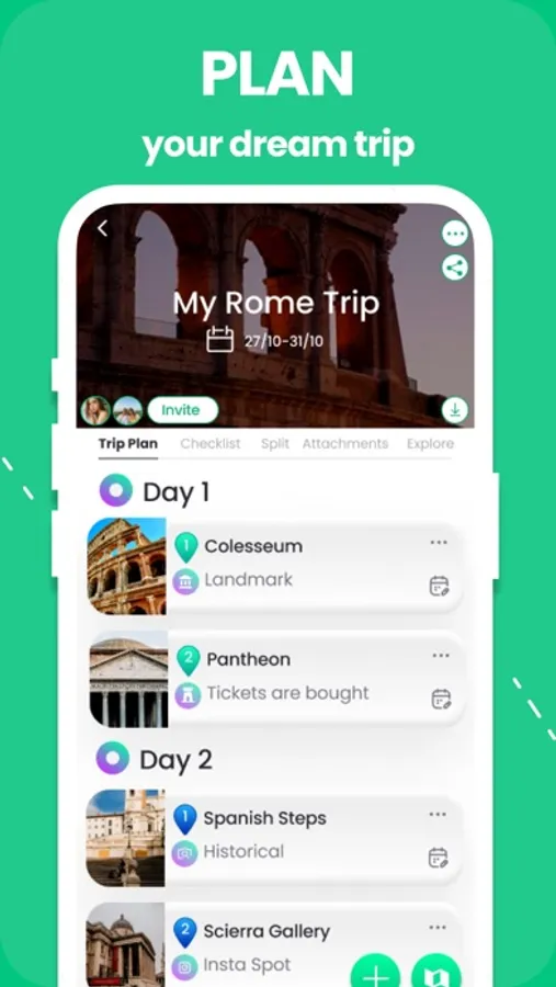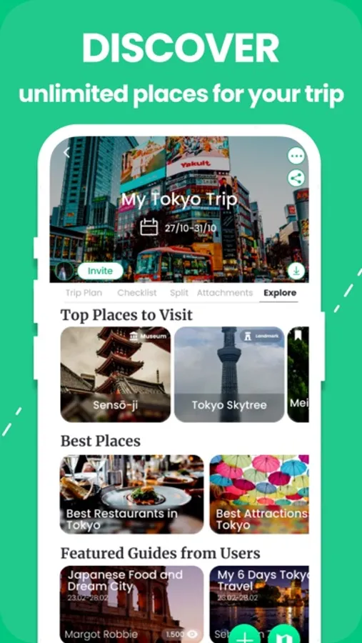 You can explore guides by professionals, discover the best places, create a trip itinerary, share experiences, find the best activities and festivals, split budget with friends, control your checklist, create a to-do list, upload memories, make notes, save travel documents, use around me function, play “Guess the Place” game and more. Everything you need for a trip is here.