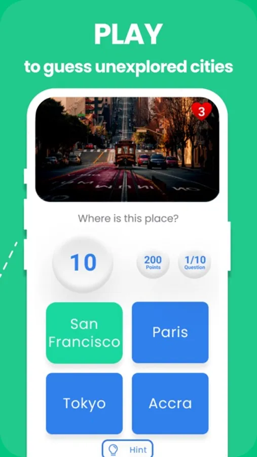 “Guess the Place” is the game function of Tourist. You have 10 seconds to guess which city the video is from. You can compete with your friends or everyone.