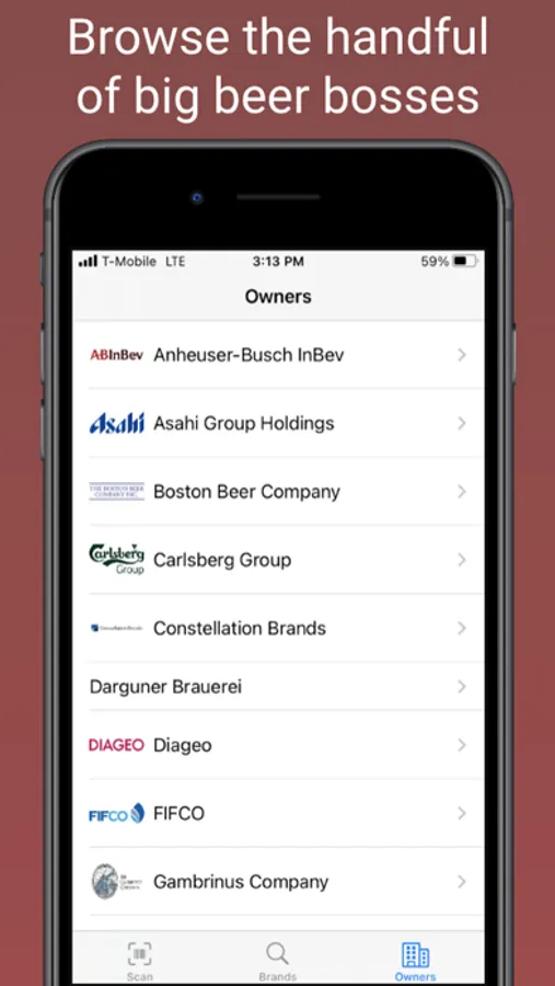 Scan a beer's UPC and find out what company owns the brand.