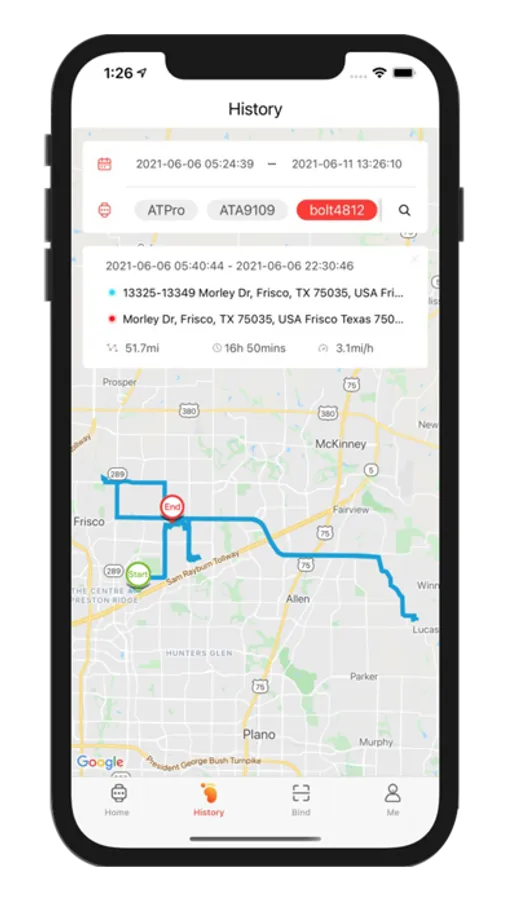* Get the location-history of the device by selecting a date-range you choose.