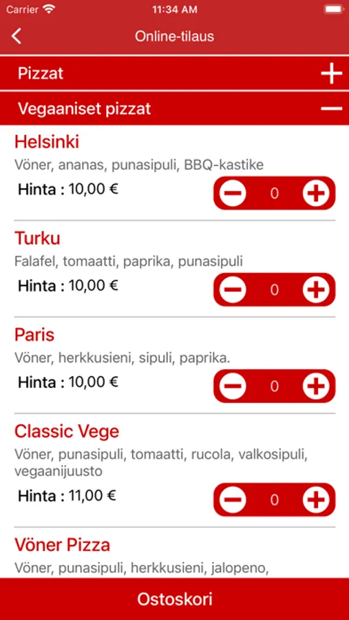 Tilaa pizzat ja kebabit noutona tai kotiinkuljetettuna. Tarjontaamme kuuluvat PIZZAT, KEBABIT, Vegaaniset pizzat, Vöner, Rullakebab, Hampurilaiset, Falafelit, Salaatit ja JUOMAT.