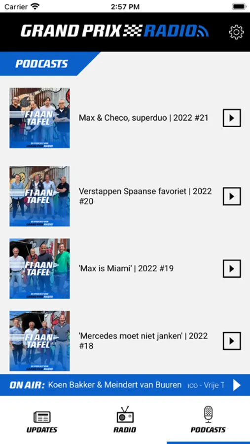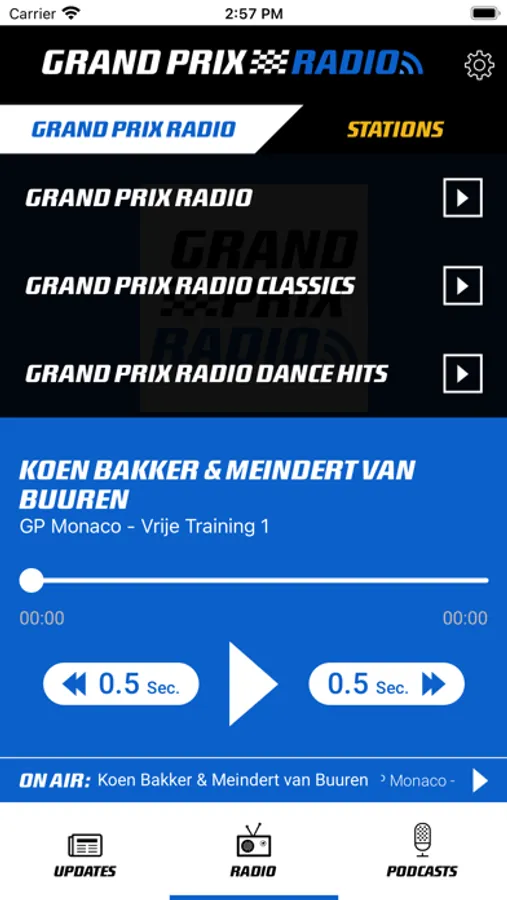 Grand Prix Radio brengt je 24 uur per dag het allerlaatste nieuws uit de racewereld. Elk half uur hoor je Formule 1-commentator Olav Mol en pitreporter Jack Plooij vanaf racecircuits over de hele wereld, met tussendoor de beste danceable hits & classics.