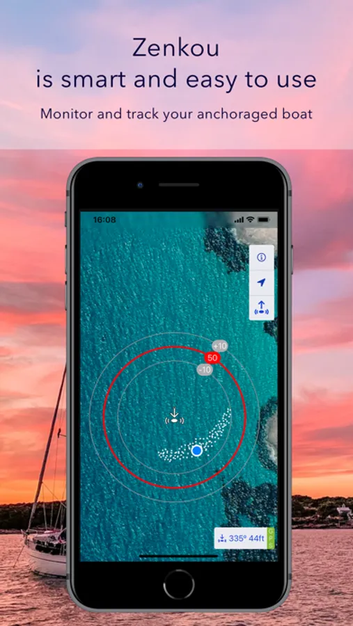 Bearing/ Distance: Simply point the iPhone to the anchor guaranteeing precise anchor alarm based on your preferred direction and distance from your location.