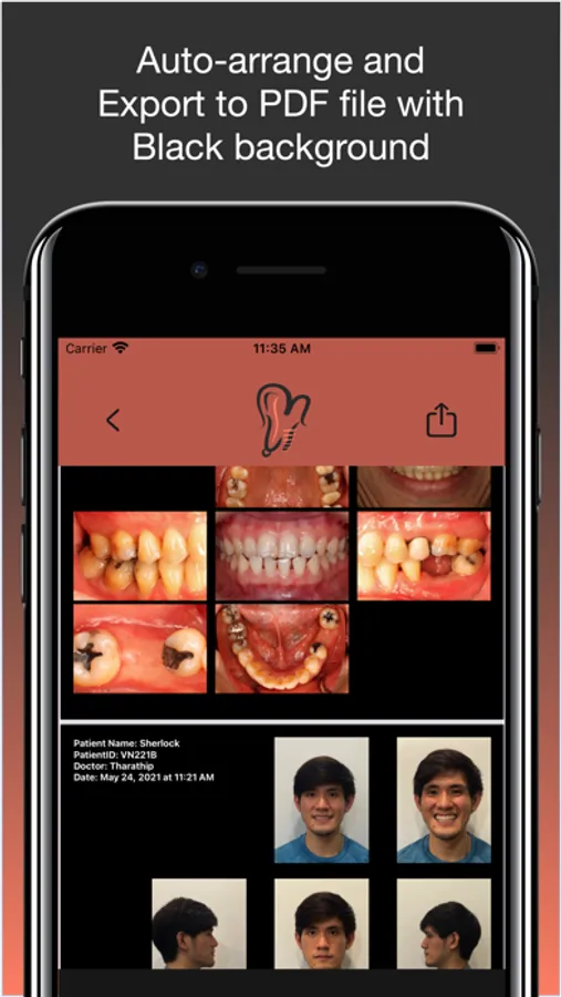 Dentista Photo also include Photo Arrangement function. The function will help users to perform auto-arrange all the photos in each date of record to A4 size of paper as PDF format. Users could also choose background colours. There are White and Black background colours. The PDF can be exported to any desired destination.