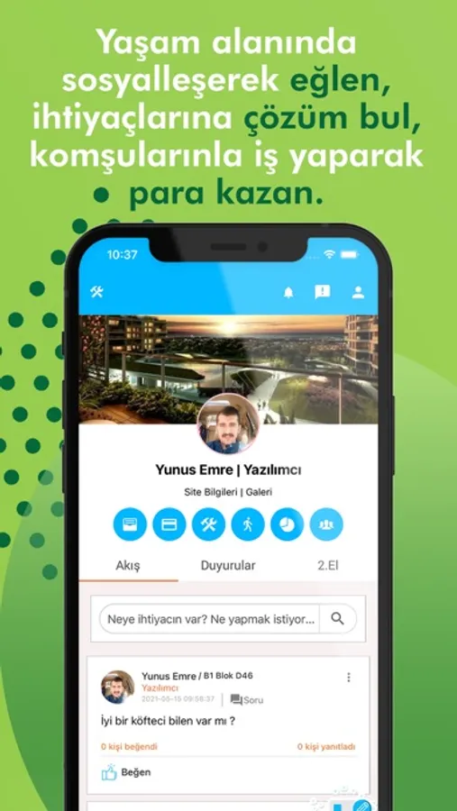 Yeni nesil yaşam alanlarına uygun, site sakinlerine özel olarak geliştirilen bu uygulama, tanışıp sosyalleşip, eğlenceli bir hayat kurmanıza olanak sağlar.