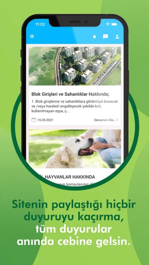 Site içerisinde veya konutlarında oluşan her türlü sorunu, tek tıkla site yönetimine, teknik desteğe ya da idari personele bildirebilirsin.