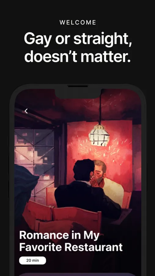 Sit back, relax, and let your mind wander away. Listen to the story with your eyes closed and imagine yourself in the same room as the characters. This is what Bang is all about. After tapping on a story, you'll see up to three highlighted words—if you touch them, the audio will pause so you can listen more closely.