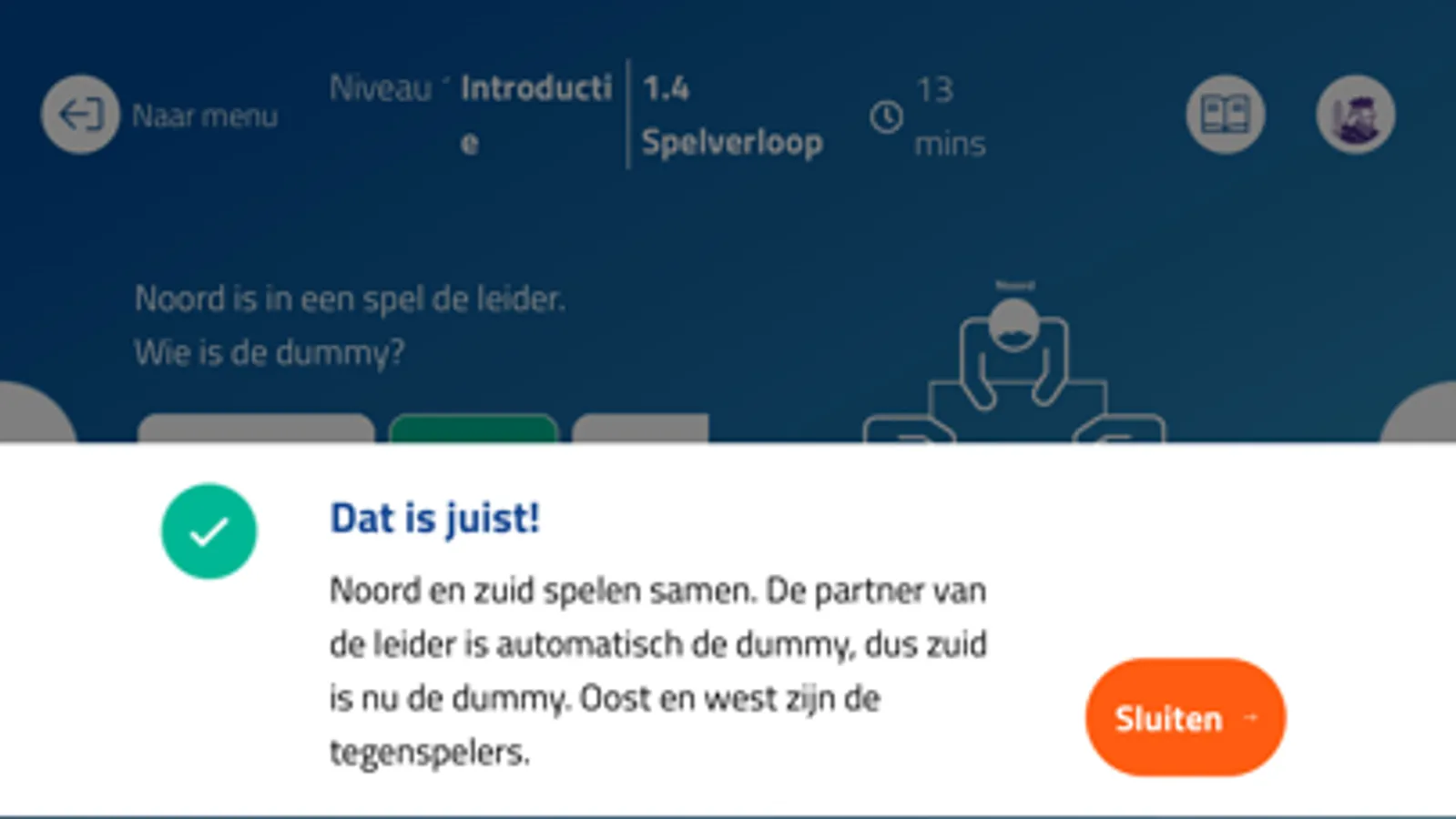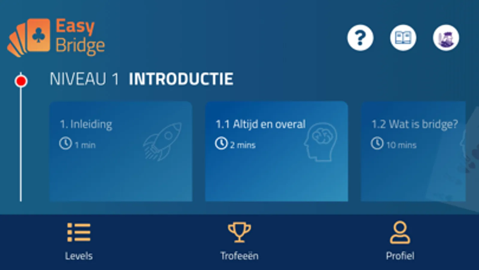 EasyBridge is de officiële bridge leer-app van de Nederlandse BridgeBond. De app laat beginners en gevorderden op hun eigen niveau eindeloos oefenen. Ieder niveau bestaat uit een deel theorie en een deel oefeningen, waarbij de gebruiker zelf kan bridgen. De volledige beginnerscursus bestaande uit 18 lessen, volgt losjes de leerlijn “Start met Bridge”.