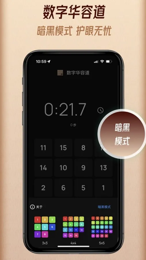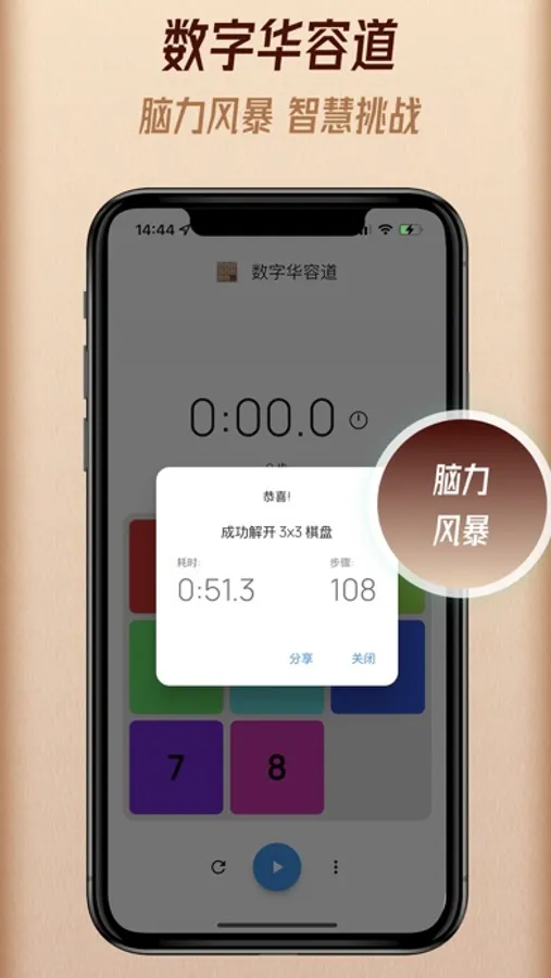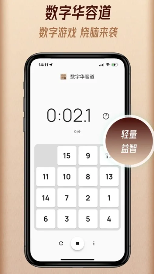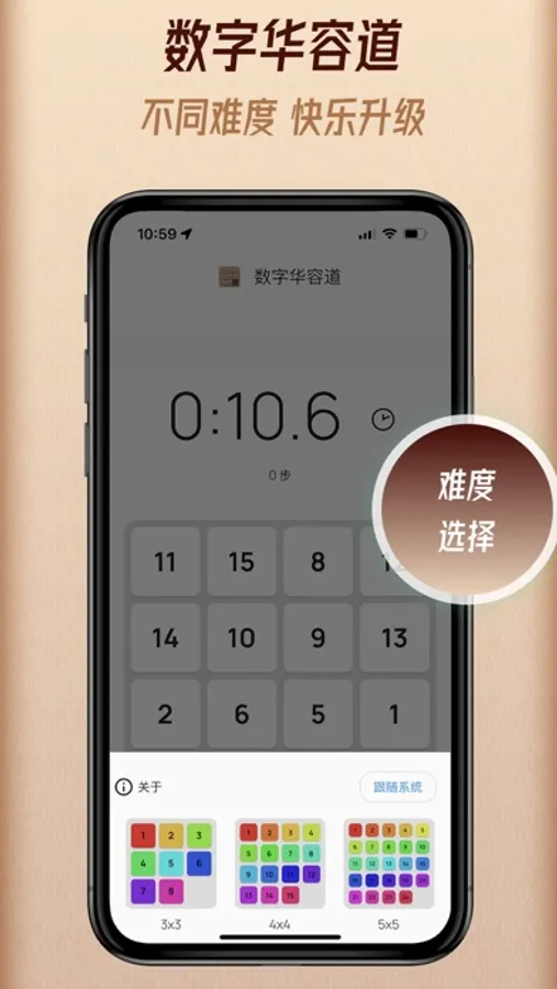 本APP是经典的数字华容道包含3x3 4x4 5x5 五种难度。无限局数,每一局都要认真思考。非常适合锻炼脑力,开发青少年智力,或闲时娱乐。