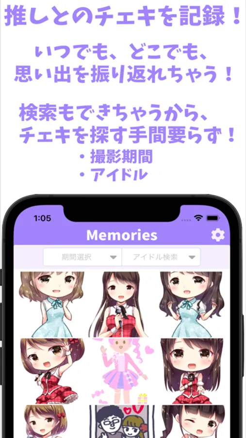 推しと撮影したチェキを保存・分析できるアプリケーションです。