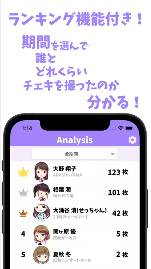 また、月毎に誰と何枚撮ったかをランキングでも見れちゃう!