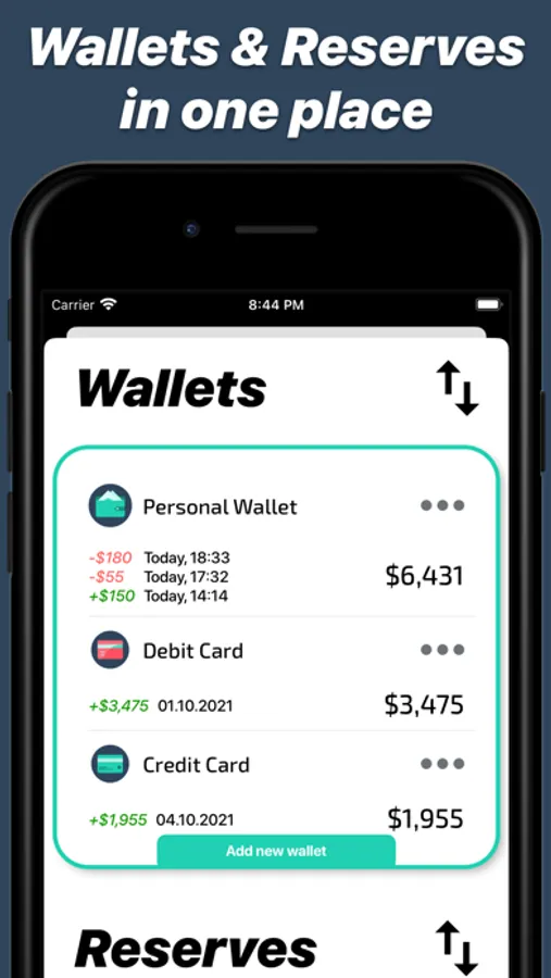 The quickest and easiest ways to add new data and control existing income and expenses. Different tools to control and manage your wallets and reserves.