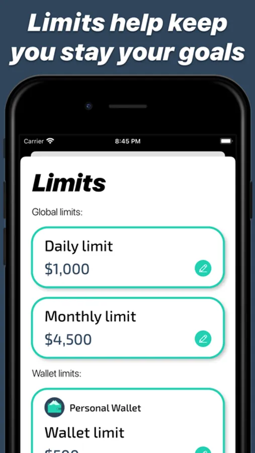 PeFi includes global and wallet-related limits, which helps you stay notified when you add more expenses than expected.