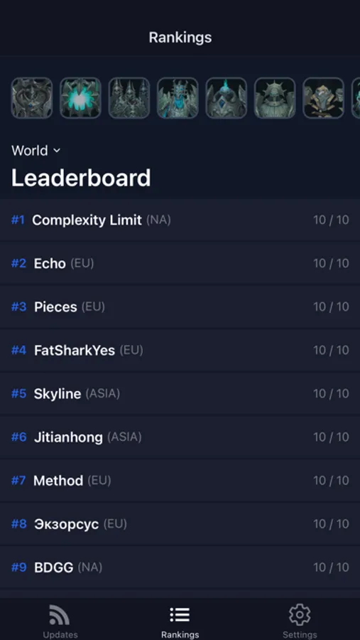 The Race to World First app provides curated textual updates about the World of Warcraft raid progress and shows always up to date leaderboards for each boss and even each region.