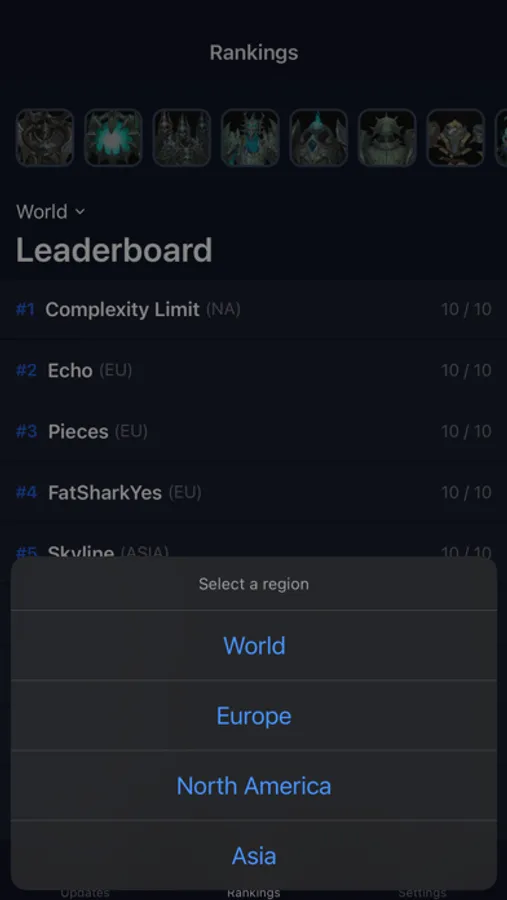 The main ranking leaderboard shares a quick overview of the current standings aroundthe world. To get an even more detailed view of how the race went you can drill down into a fully curated top 10 list for each region and encounter.