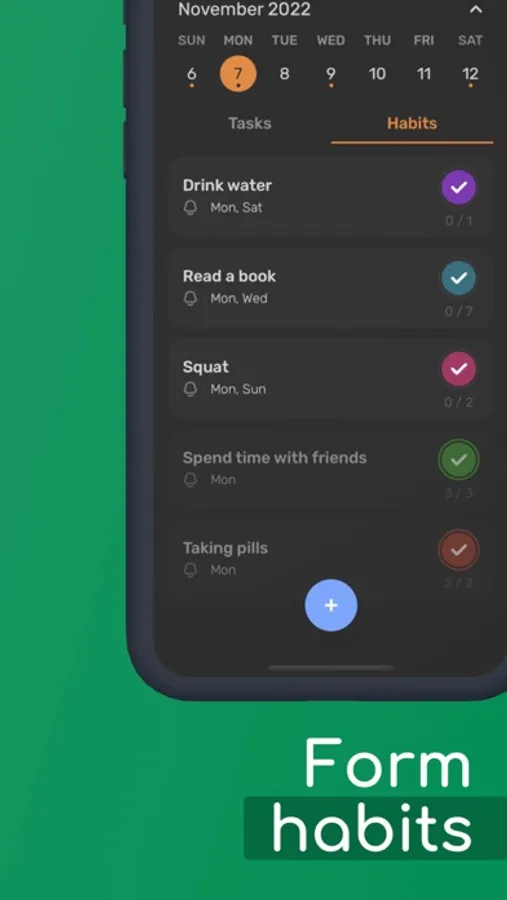 * Receive notifications about tasks and habits