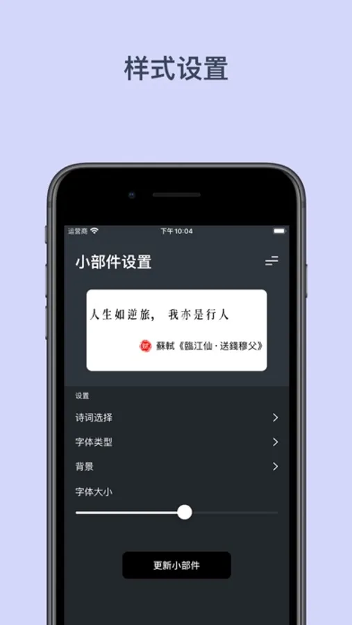 本app以小部件的方式,把您最喜欢的诗词放在桌面,您可以根据自己喜欢的样式来调整字体类型,大小等等