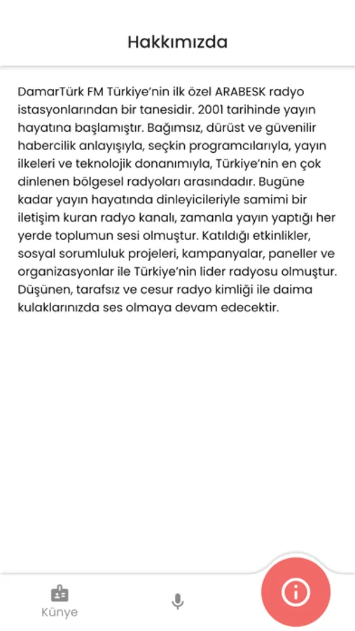 DamarTürk FM Türkiye’nin ilk özel ARABESK radyo istasyonlarından bir tanesidir. 2001 tarihinde yayın hayatına başlamıştır. Bağımsız, dürüst ve güvenilir habercilik anlayışıyla, seçkin programcılarıyla, yayın ilkeleri ve teknolojik donanımıyla, Türkiye’nin en çok dinlenen bölgesel radyoları arasındadır. Bugüne kadar yayın hayatında dinleyicileriyle samimi bir iletişim kuran radyo kanalı, zamanla yayın yaptığı her yerde toplumun sesi olmuştur. Katıldığı etkinlikler, sosyal sorumluluk projeleri, kampanyalar, paneller ve organizasyonlar ile Türkiye’nin lider radyosu olmuştur. Düşünen, tarafsız ve cesur radyo kimliği ile daima kulaklarınızda ses olmaya devam edecektir.