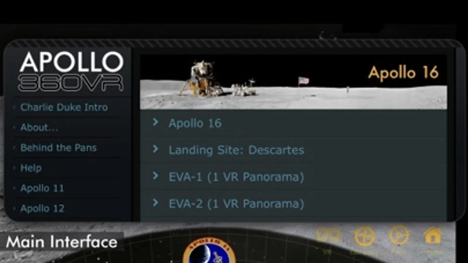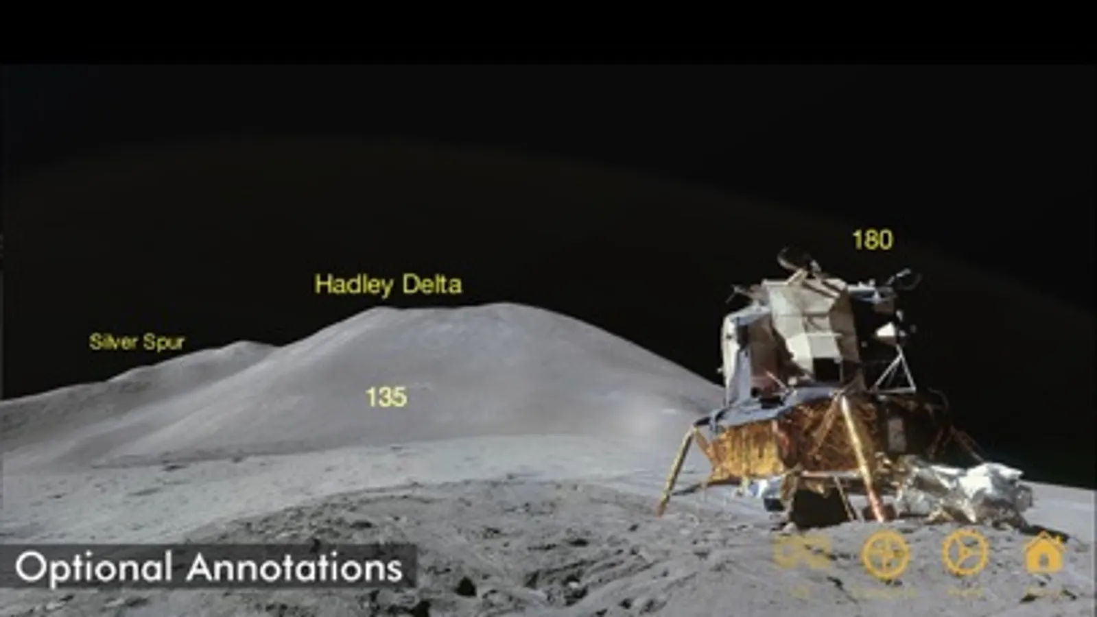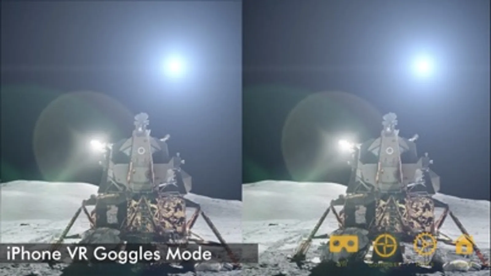 Apollo 360VR for iOS is a new Virtual Reality App allowing you to get a Moonwalkers eye view of the Lunar Surface in glorious 360 degrees. Made from high resolution Apollo 360 degree panoramas with virtual a Sun and Earth, mission audio, and optional narration and annotations.