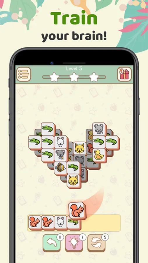 1. Choose three same blocks of identical pet pictures! Match triple tiles to put them into the stack. Three similar tiles will be matched and removed from your tile stack.