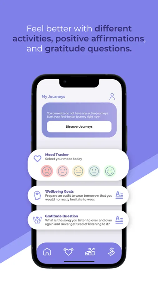 • With the gratitude question, you can see how many things you can be grateful for. • With the "Feel Good Now" button in the shape of a heart, you can do short exercises to instantly feel better when you are feeling bad.