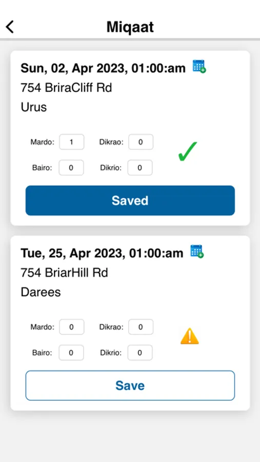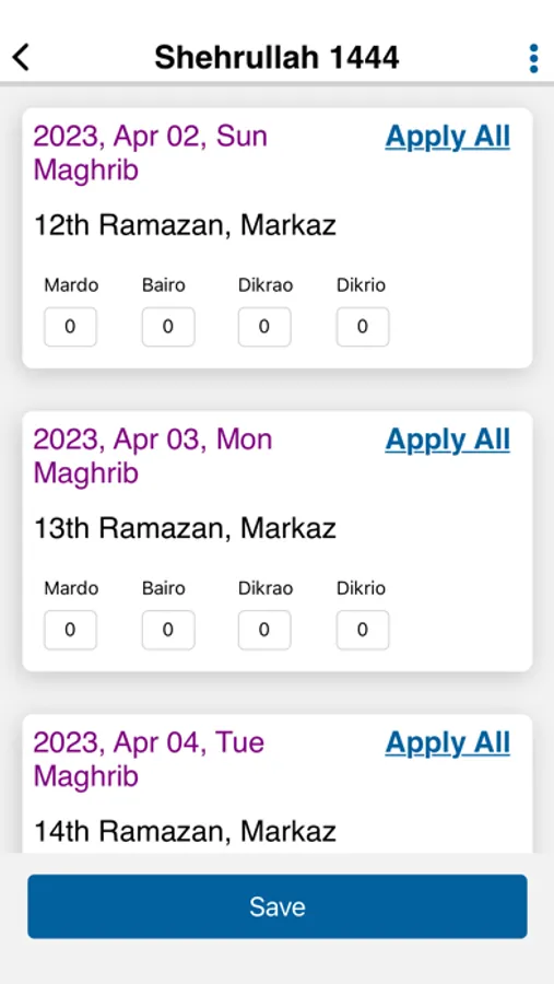 It has the feature for Miqaat Signup, which will list all the miqaats in the month and can do miqaat wise signups.