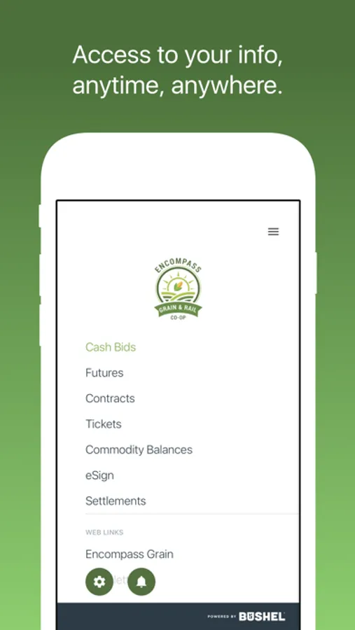 The Encompass Grain & Rail COOP app is free, secure, and developed by the industry-leading Bushel platform.