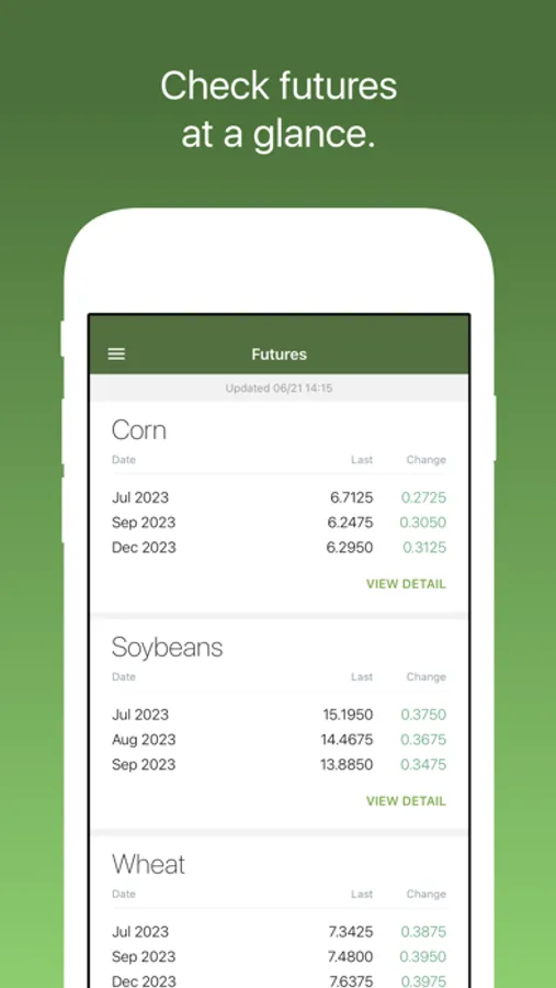 Futures: See Grains, Feed, Livestock, and Ethanol futures listed in order of your preference