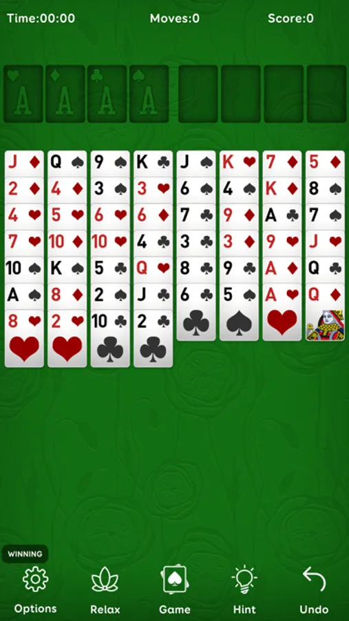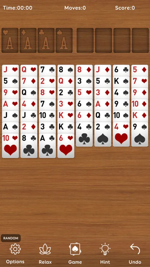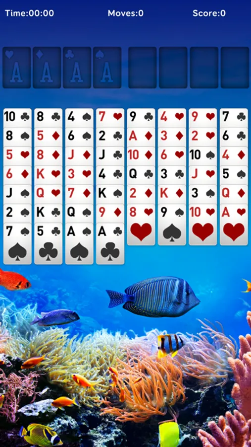 FreeCell is one of the most popular Solitaire card games. The goal is move all 52 cards up to the four foundations in sequential order, from Ace to King, for each suit. Tap to move control for simple gameplay!