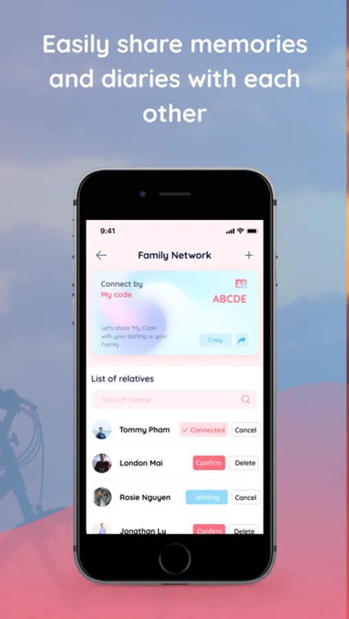 (With the family network function, you can share common events with everyone.)