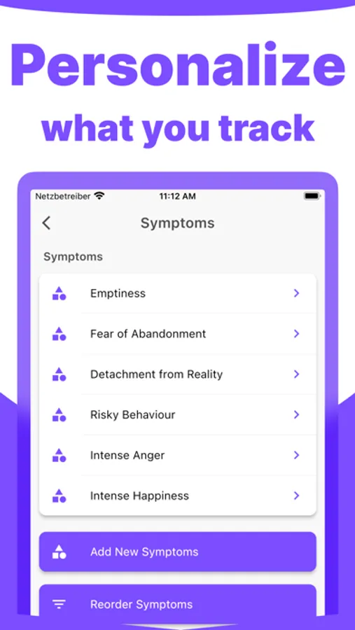 - Personalize your tracker by editing or creating custom symptoms and treatments
