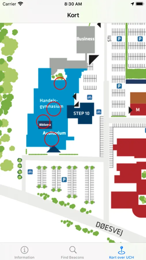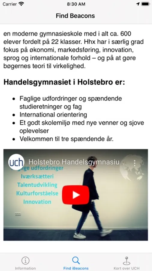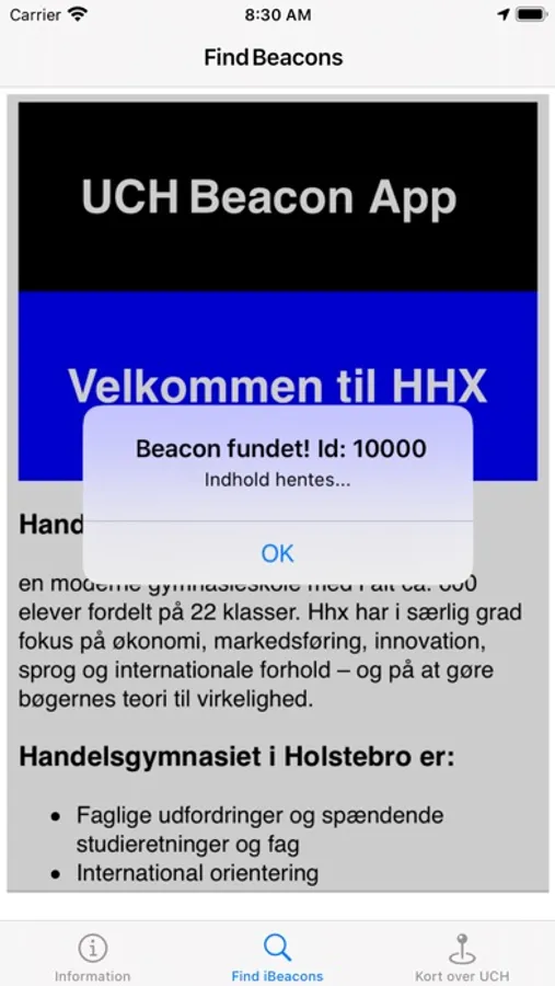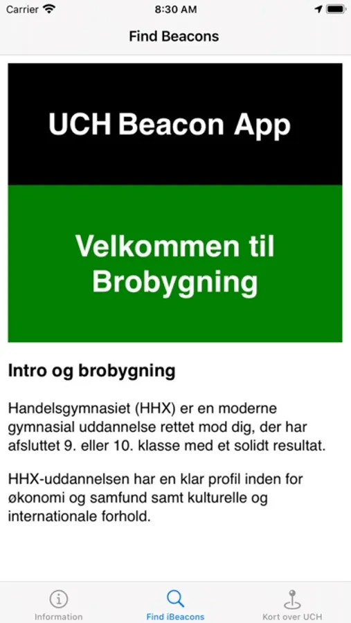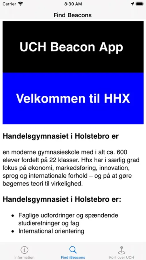 Find studieinformation via beacons placeret på udvalgte steder på HHX i Holstebro.