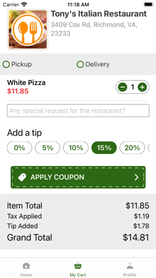 1. Get the Tony's Italian Restaurant’s Online Ordering app and conveniently order from anywhere on your iPhone.