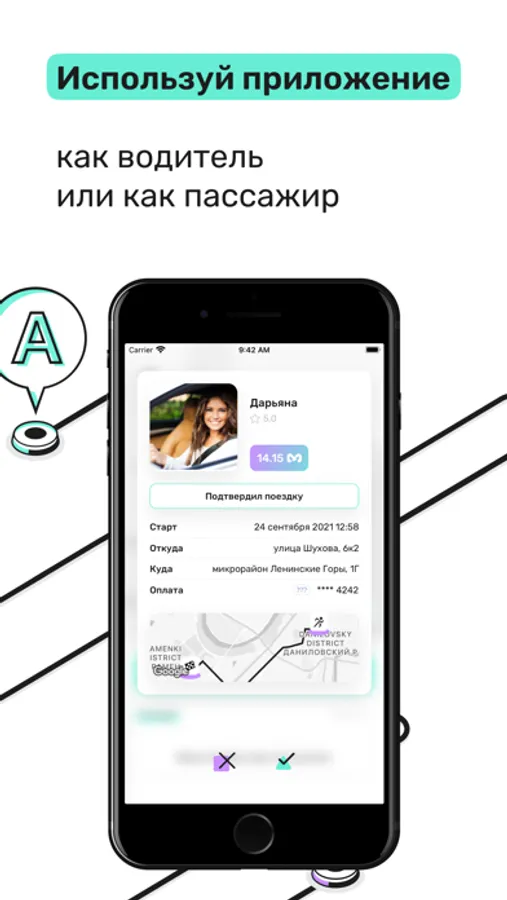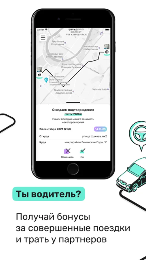 Пассажир и водитель ставят оценки друг другу после каждой поездки. Следующий пользователь будет видеть оценку водителя или пассажира, а также его текущий рейтинг. Поездку можно отменить в случае, если попутчик вам не по душе.