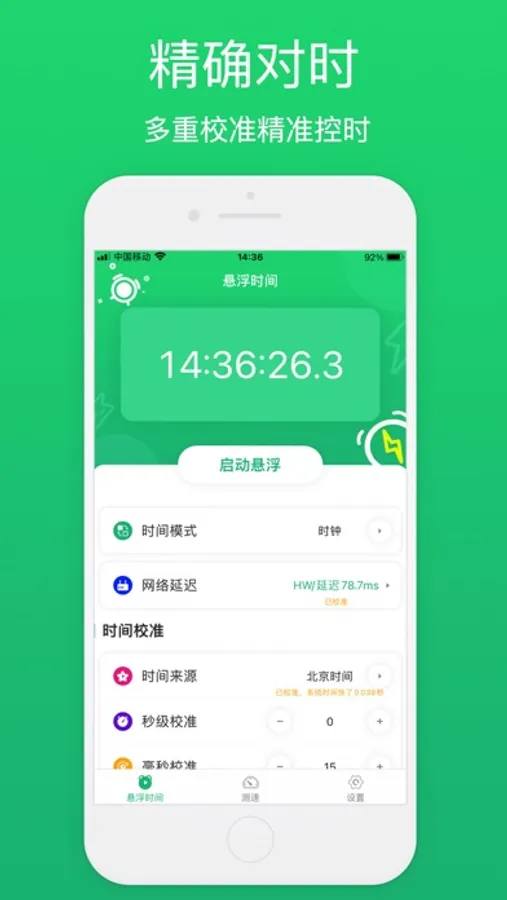 悬浮时间可启动悬浮窗,使时间浮窗可以悬浮在桌面以及任意App上,是专业的对时助手。