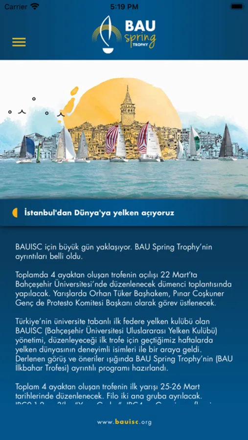 BAU Spring Trophy Resmi Uygulaması - Yelkencilik ve inovasyonun buluşma noktası.